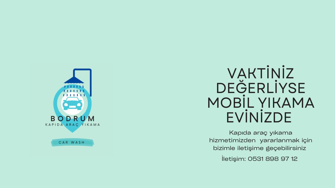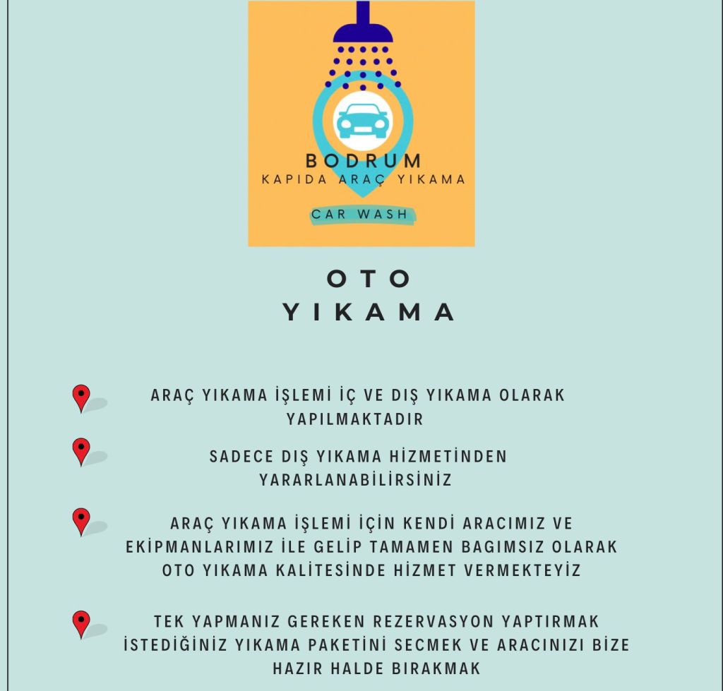Bodrum yarımadası sınırları içerisinde adresinizde, evinizde, ofisinizde ve otoparkınızda mobil araç yıkama hizmeti vermekteyiz. Tamamen bağımsız elektrik, su ve profesyonel makinelerimiz ile adresinize gelip aracınızı iç-dış A Kalite FIRÇASIZ CİLALI araç temizliği yapmaktayız. Profesyonel ekip ve malzemelerle çalışıyoruz. Kullandığımız ürünler Ph nötr değerli olup araca ve doğaya zarar vermeyen oto yıkamalarda kullanılan ürünlerin Avrupa standartlarında en kaliteli ürünleridir.